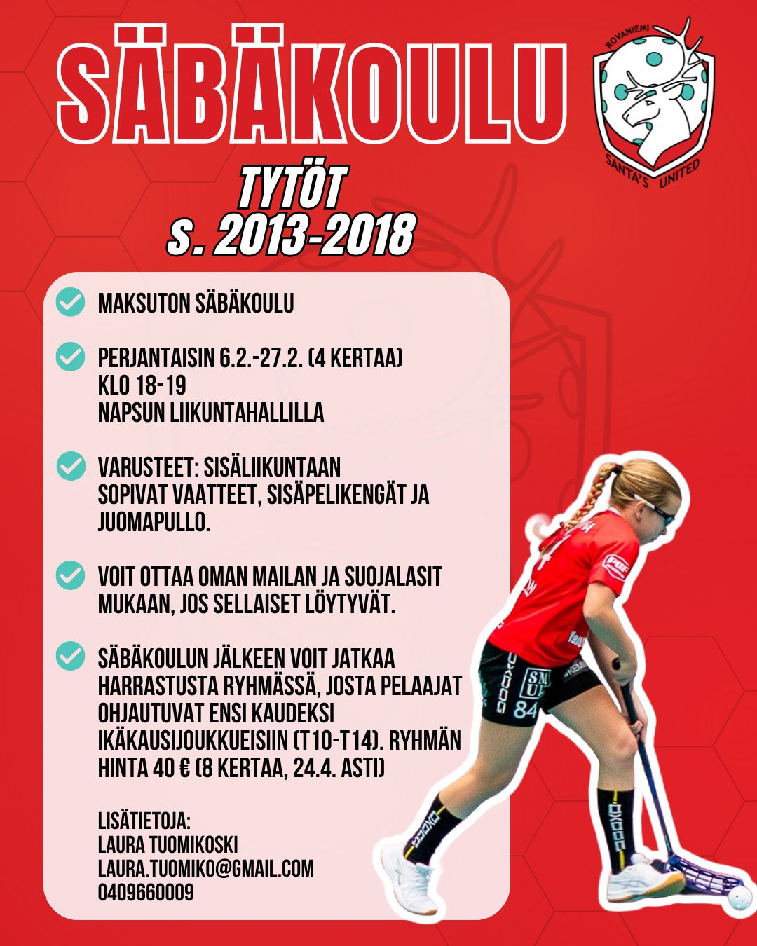 Santa’s United järjestää tytöille suunnatun säbäkoulun Napsun monitoimitalolla!